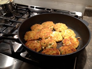 Brown the cakes over med-high heat until golden brown, flip carefully, and brown the other side.  Serve with the sauce.
